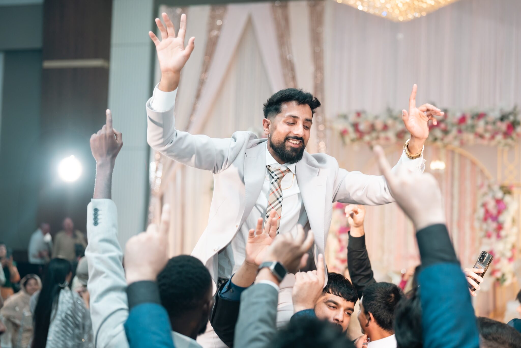 The couple made a stunning entrance, with Sana glowing in a breathtaking bridal outfit and Khizar complementing her perfectly in traditional attire. The energy in the room was electric, with friends and family dancing, celebrating, and making unforgettable memories.